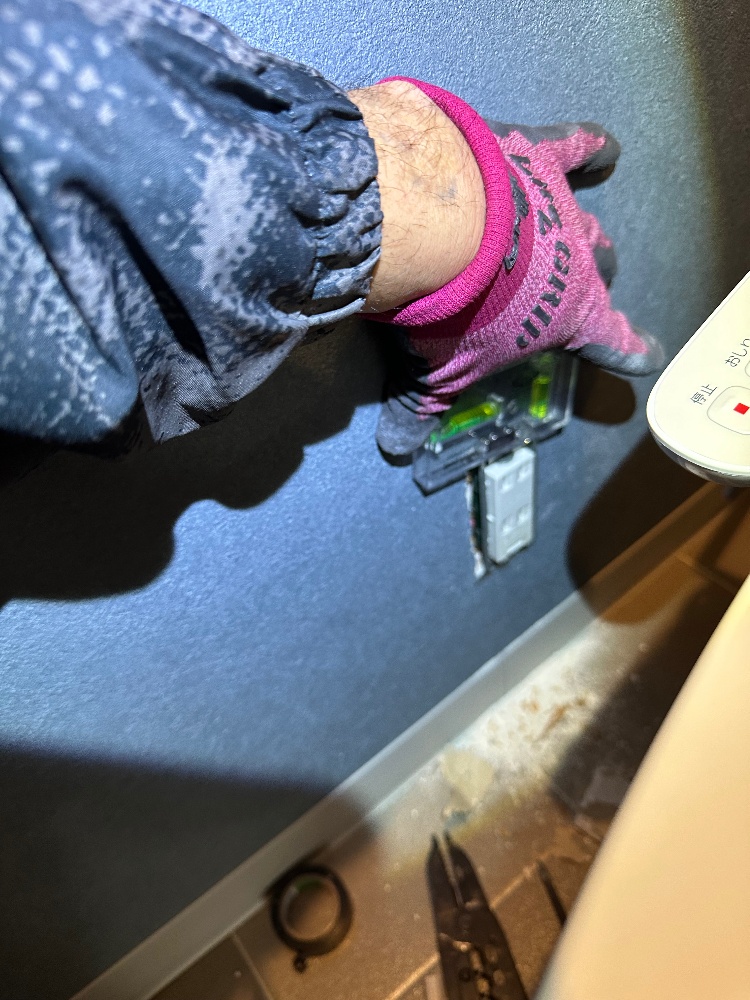 今日は、朝からエアコン交換とトイレの専用コンセントの増設致します。